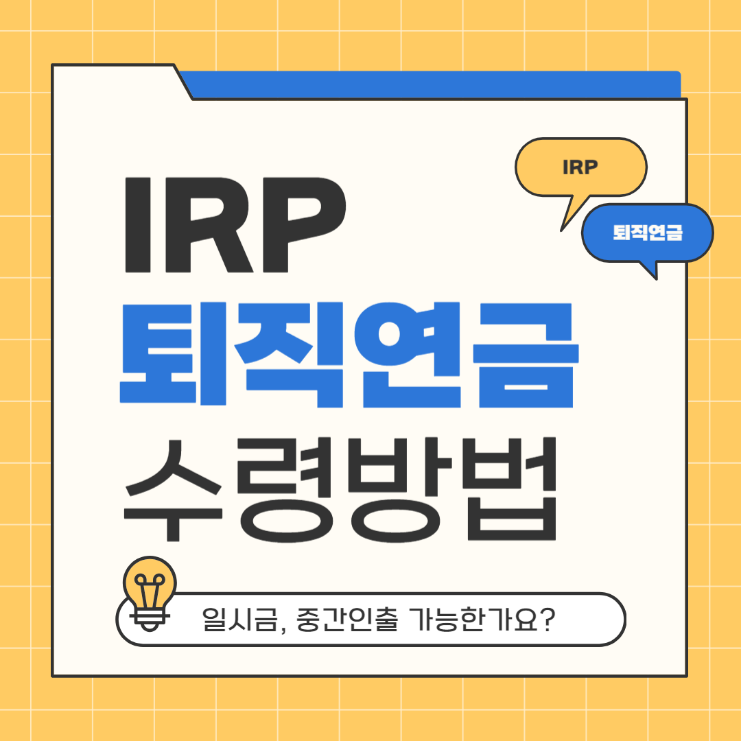 또한 일시금 수령이 되지 않는 경우가 있다 보니 어떠한 경우에 일시금으로 받을 수 있는지 궁금해하시는 것 같아 오늘은 IRP 퇴직연금 수령 방법에 대해 자세하게 알아보도록 하겠습니다.