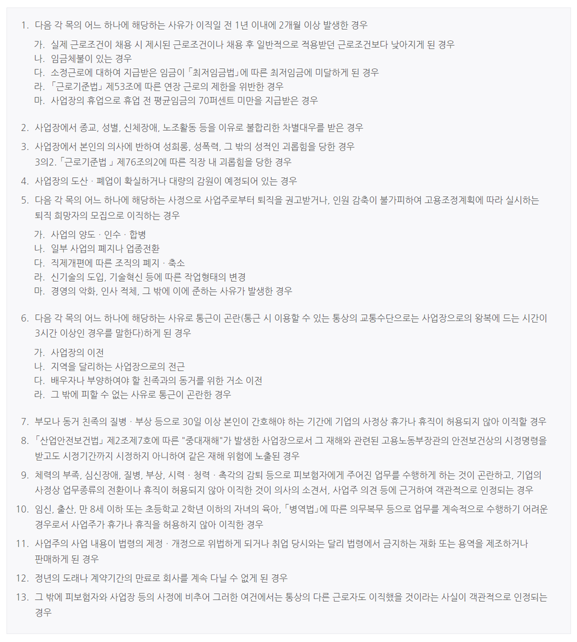 위의 사유로 인해 자발적 퇴사를 하는 경우 실업급여 수급이 가능합니다.