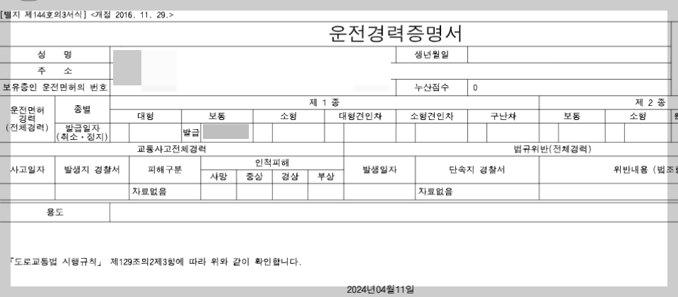 운전경력증명서