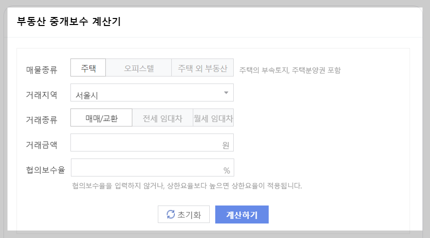 부동산 중개수수료는 네이버나 다음같은 사이트에서 부동산중개수수료 계산기를 검색하시면 간단하게 계산이 가능합니다.