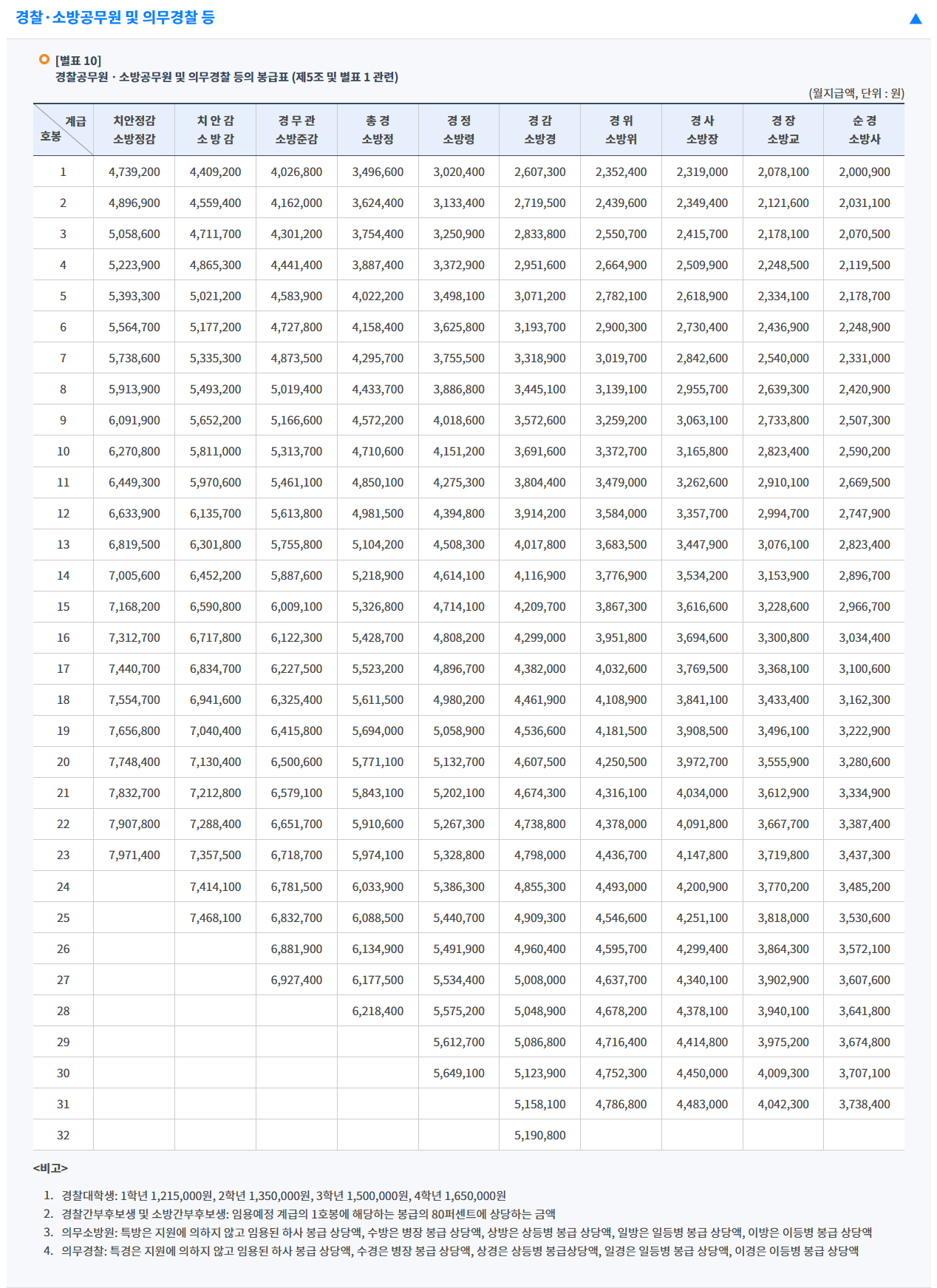 [ 경찰공무원 봉급표 ]