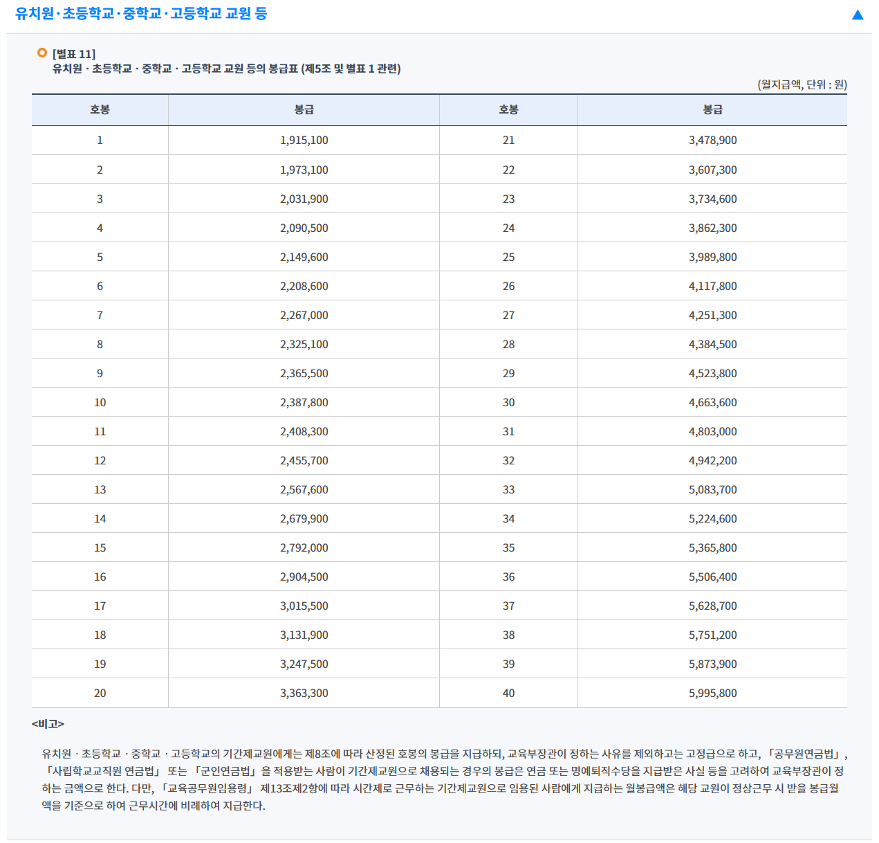 [ 교사 교원 봉급표 ]