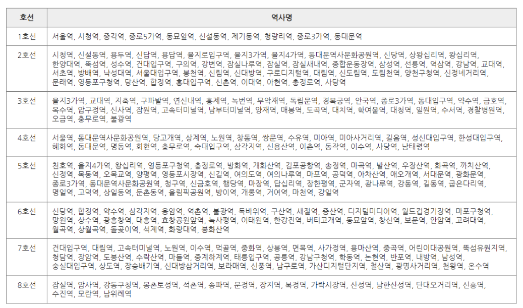 실물 기후동행카드는 지하철 고객안전실이나 인근의 편의점에서 구매하실 수 있습니다. 카드의 실제 가격은 3,000원으로 구매 시 사용설명서가 첨부되어 있어서 사용방법을 바로 알 수 있습니다. 구매가능한 지하철 고객안전실은 아래 표에서 정리해 두었습니다.