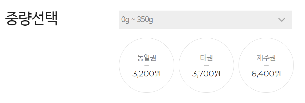 0~500g | 3200 ~ 3700원 | 3700 ~ 4200원 | 6400 ~ 6900원 |