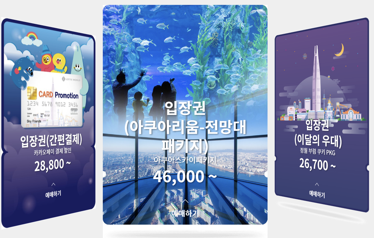 롯데타워 전망대를 방문할 때는 입장권 구매 및 예약이 필수입니다. 또한 롯데타워 사이트에서는 매달 다양한 이벤트들을 진행하고 있으니 이벤트를 이용해 보시는 것도 추천드립니다.