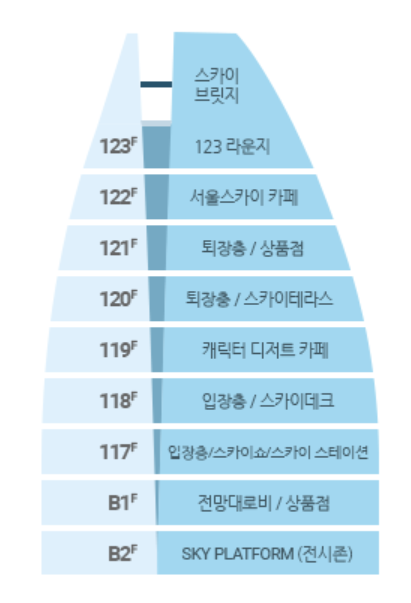 관람객의 안전을 위해 기상에 따라 120층 스카이 테라스는 운영되지 않을 수 있으며 방문객 수에 따라 스카이데크와 포토존의 운영방식이 변동될 수 있습니다.