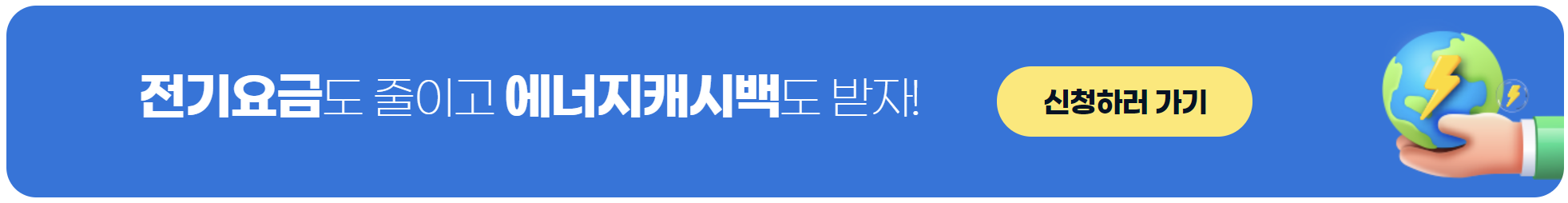 최근 전기요금이 올라 가정마다 전기요금이 많이 부담이 됩니다. 에너지캐시백은 온라인을 통해 간편하게 신청이 가능하고 전기세 절약 및 추가 캐시백도 받을 수 있는 기회이니 놓치지 마시고 꼭 신청하시기 바랍니다.